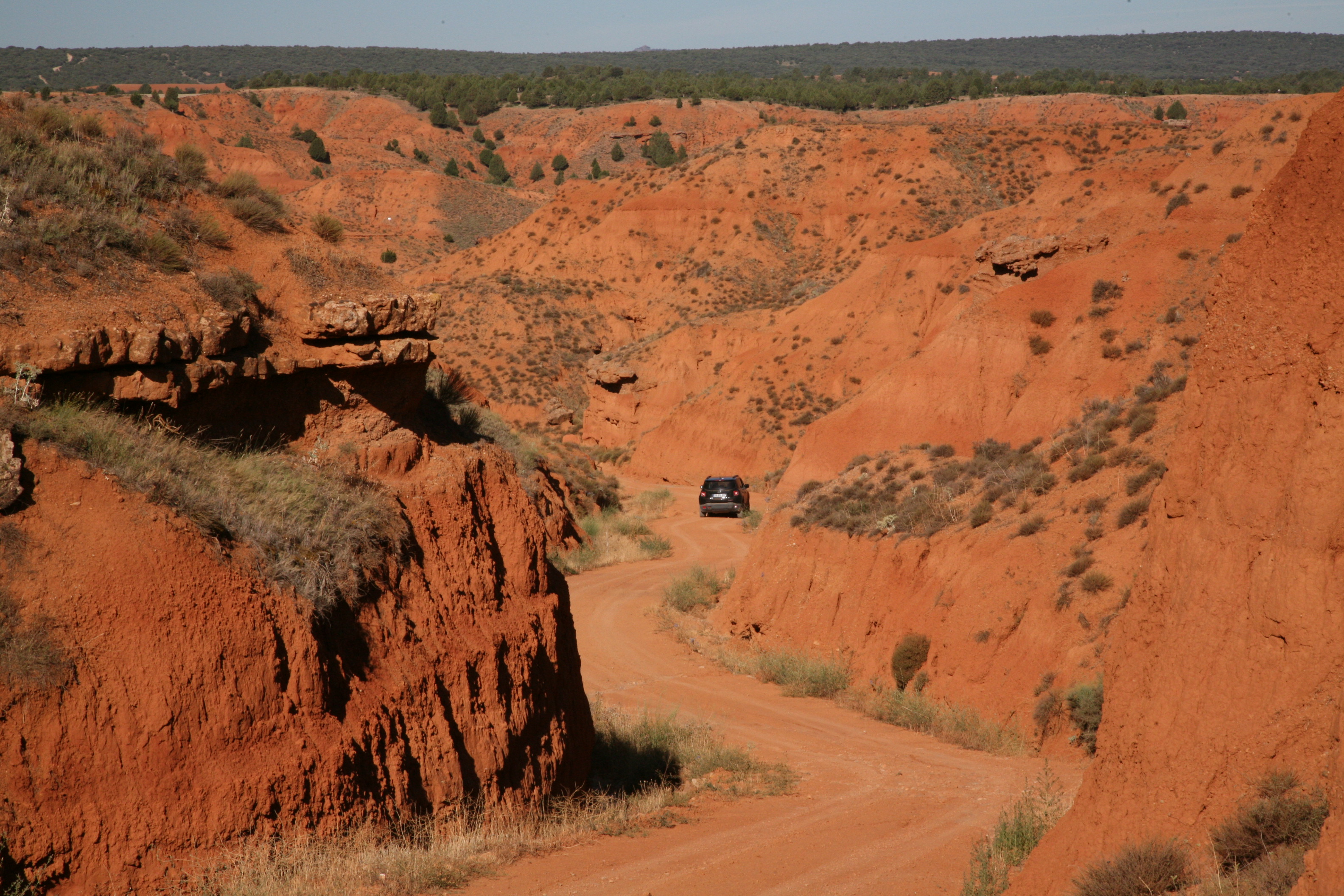 -Entre les cases 79 et 81, la piste est très sensible au ravinement et on y trouve souvent de nombreuses ornières et saignées d'une profondeur restant modérée. Ce passage très amusant pour les raiders expérimentés peut cependant destabiliser les débutants. Mais avant de choisir le contournement, allez voir l'état de la piste : elle est large et on peut facilement faire demi-tour. Pour contourner ce passage depuis la case 75, prendre la route départementale A-1513 à gauche en direction de Teruel. Après 4.2 Kms (N 40°20.056' W 01°21.717'), on trouve une belle piste à droite avec un panneau indicateur "Peña la Cruz". Suivre cette piste jusqu'au carrefour du Km 6 (N 40°19.279' W 01°21.071') où vous prendrez à droite, toujours en direction de la Peña la Cruz. Après 10.3 Kms, vous atteignez le parking et le terminus de la piste correspondant à la case 82.
